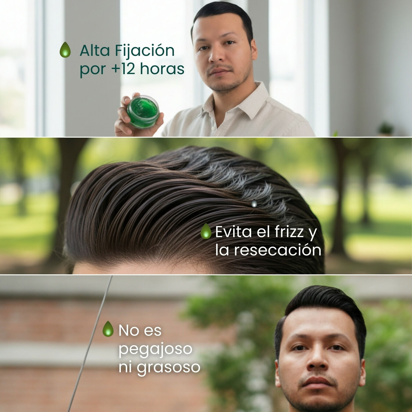 Hombres que prefieren un look clásico, con control total, pero que también valoran el cuidado capilar. Cabellos rebeldes, secos o dañados también se benefician gracias a su base nutritiva.