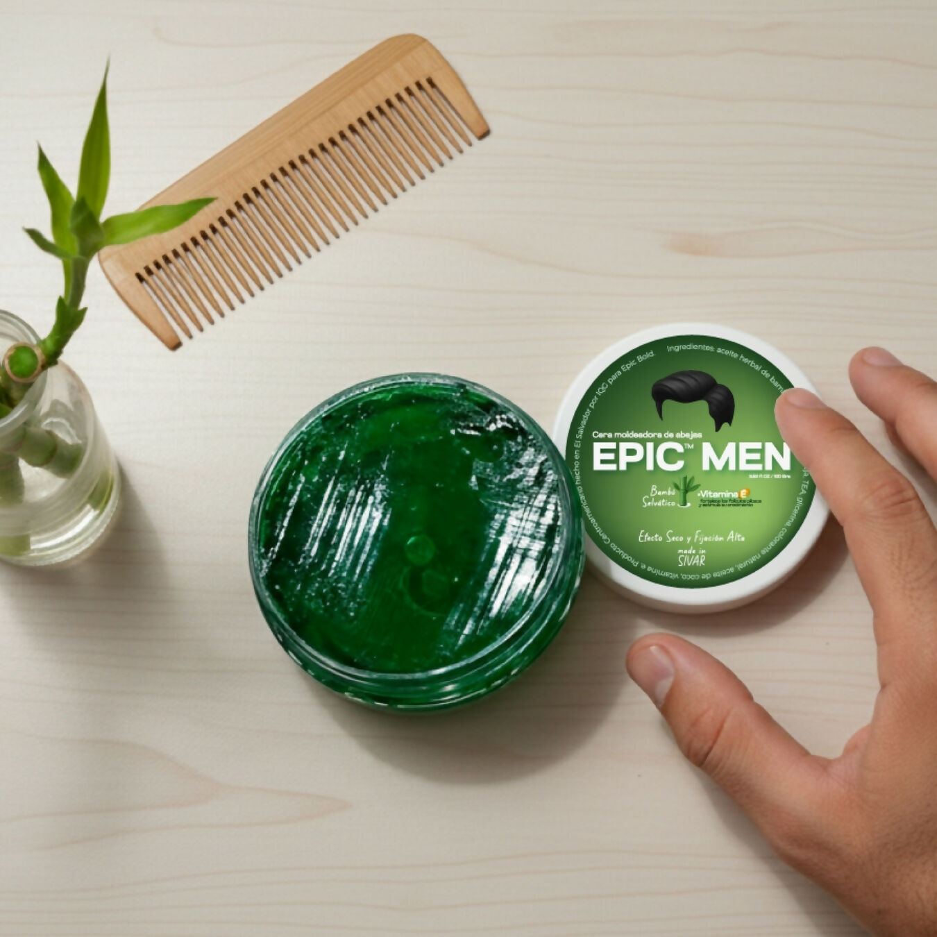 ¿Buscás una cera con buena fijación, sin ingredientes agresivos y que también cuide tu cabello? Entonces esta es para vos. La Cera Tradicional Epic Men combina lo mejor de la naturaleza con un acabado clásico: una fijación media, control duradero y una textura flexible que no maltrata tu pelo ni tu cuero cabelludo.