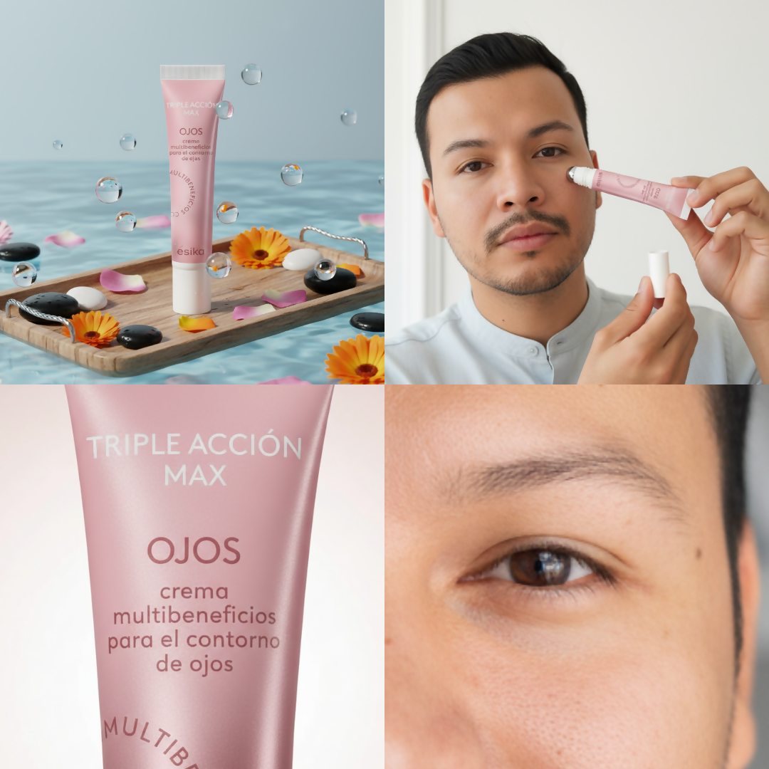 Disminuye la apariencia de las bolsas, ojeras e incluso de las arrugas. También afirma el contorno de los ojos, suaviza la piel y ayuda a proteger el medio ambiente.