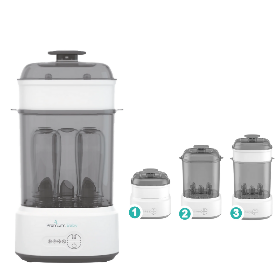 Mantén todos los accesorios de tu bebé libres de bacterias y listos para usar con el Esterilizador y Secador Premium Baby, diseñado para facilitar la rutina diaria de las familias modernas. Su tecnología avanzada combina esterilización con vapor y secado automático, ofreciendo un proceso rápido, seguro y completamente libre de químicos.