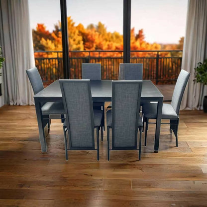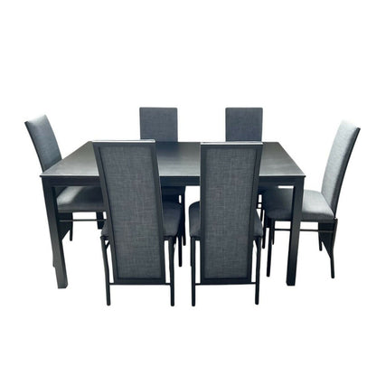 DESCRUBRE EL COMEDOR FENIX. DISEÑO QUE COMBINA FUNCIONALIDAD Y ESTILO MODERNO ESTE JUEGO DE COMEDOR PARA 4 PERSONAS Y ESTÁ DISEÑADO PARA CAPTURAR LA ATENCION CON UNA BASE METÁLICA EN NEGRO QUE OFRECE RESISTENCIA Y ESTABILIDAD EXCEPCIONAL.