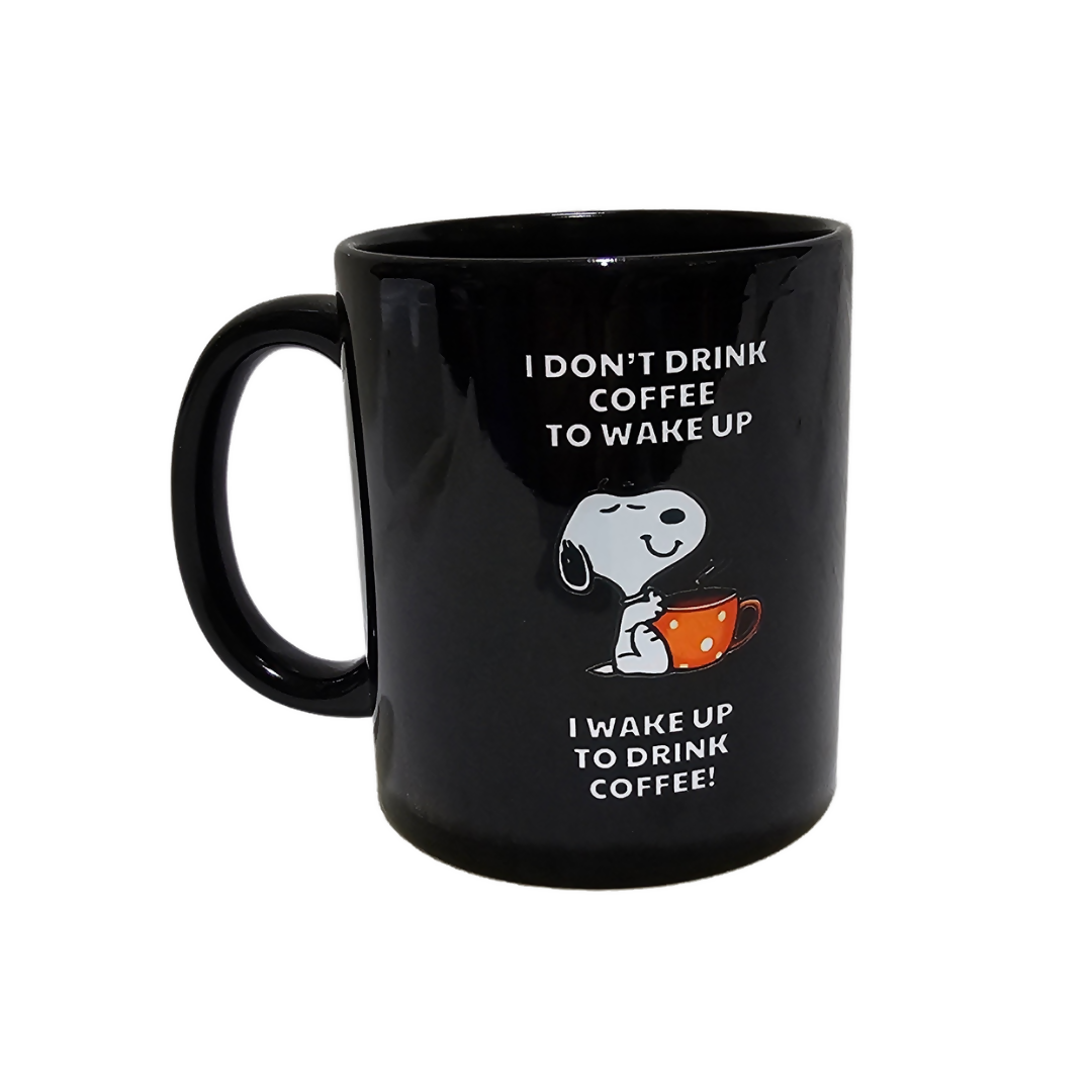 Taza Negra de Snoopy, Sublimada al frente y reverso, Capacidad 11 ozs